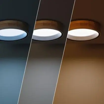 Ceiling Light Round Wood Metal Black 15W 1000lm - 830-840-860 CCT