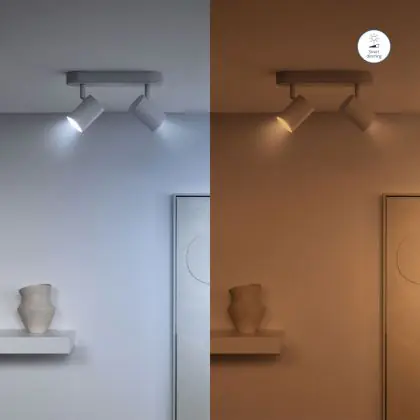 4. Dim to warm: Dimming makes the light warmer (more yellow). The more you dim, the warmer the colour.