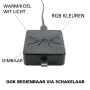 The light color indicates the color of the light emitted: white, colored, or UV. For many products in our assortment, the light is white, available in a range from very warm white to daylight white (expressed in Kelvin). With colored light, you have two options: 1. A single fixed color, such as red or green. 2. RGBW, which means you can adjust the light color at any time: white or colored.