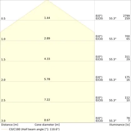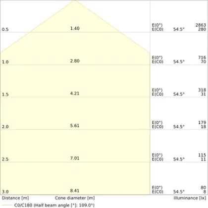 The colour code is a combination of colour rendering (CRI) and light colour (Kelvin). The first number indicates the colour rendering (1 = very poor colour rendering, 9 = maximum colour fastness). The second and third number contains the light colour. Example: the colour code 830 consists of good colour rendering (8) and warm white light (3000K). |