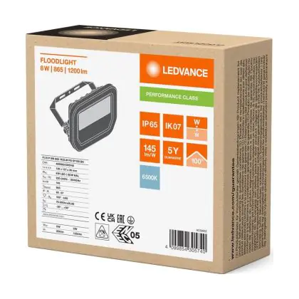 Ledvance LED Floodlight Aluminium Black 8W 1200lm 100D - 865 Daylight | IP66 - Symmetrical