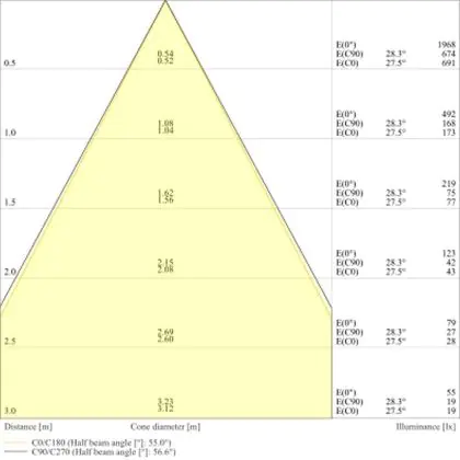 A beam angle indicates the angle of the light beam coming from a light source. The smaller the radiation angle in degrees (D), the narrower the beam angle.