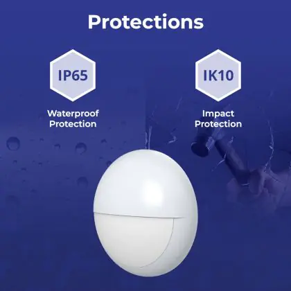 The impact protection value (IK) stands for impact resistance and protection against vandalism. This is expressed in combination with 2 digits (IK00 - IK10). Products with IK00 are not protected against resistance. Products with IK10 offer resistance to shocks of 20 Joule and are also vandal-proof.