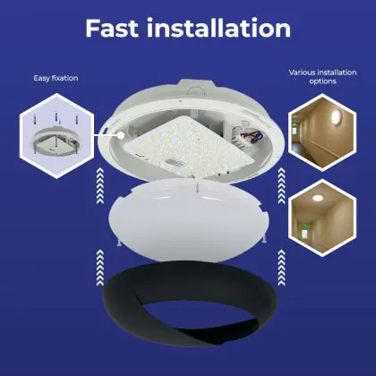Lighting with a built-in emergency lighting unit (battery) continues to burn for a certain time if the power fails. |
