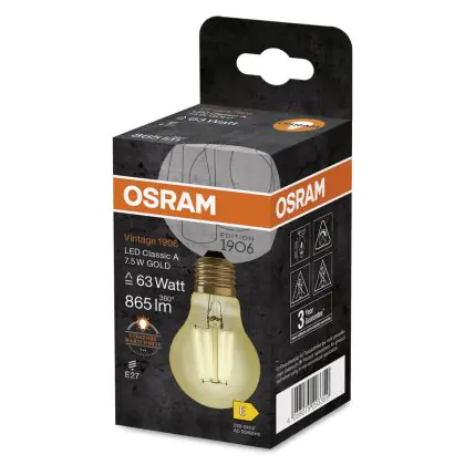 Osram Vintage 1906 LED E27 Pear Filament Gold 7.5W 865lm - 825 Extra Warm White | Replaces 60W