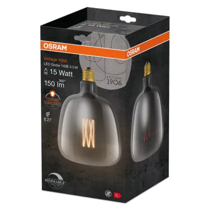 Osram Vintage 1906 LED E27 Special Filament Smokey Clear 4.5W 150lm - 816 Extra Warm White | Dimmable