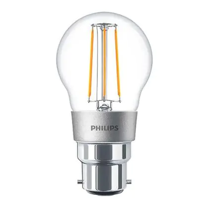 Philips Classic LED Lustre B22 Ball Filament Clear 4.5W 470lm - 827 Extra Warm White | Dimmable - Replaces 40W