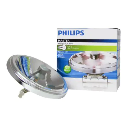 Philips MASTERLine 111 ultra low voltage halogen lamps, with aluminum reflector and double-ended burner and infrared coating. The lamps of Philips Masterline 111 range have many advantages: In addition to being energy efficient, they emit 40% less heat